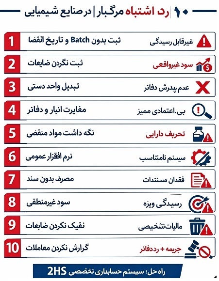 ثبت ناقص یا نادرست اطلاعات مالی میتواند در زمان رسیدگی مالیاتی یا بازرسیهای قانونی مشکلات جدی ایجاد کند. در صنعت مواد شیمیایی که تحت نظارت بیشتری قرار دارد، این ریسکها بسیار پرهزینهتر از سایر اصناف هستند.