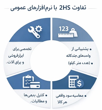 | نرمافزار حسابداری 2HS | نرمافزار حسابداری عمومی | معیار مقایسه |