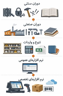 دوران سنتی → تولید دستی + حسابداری دفتری