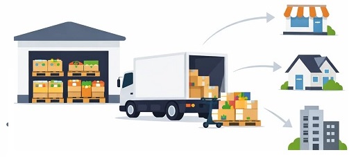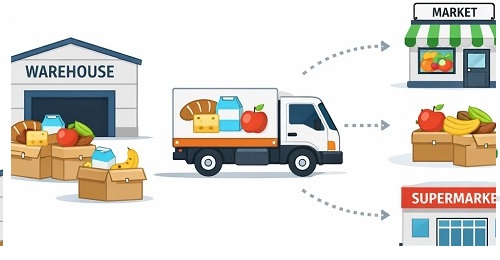 فرآیند خرید عمده، انبارداری و توزیع مواد غذایی به خردهفروشان یا مصرفکنندگان است.